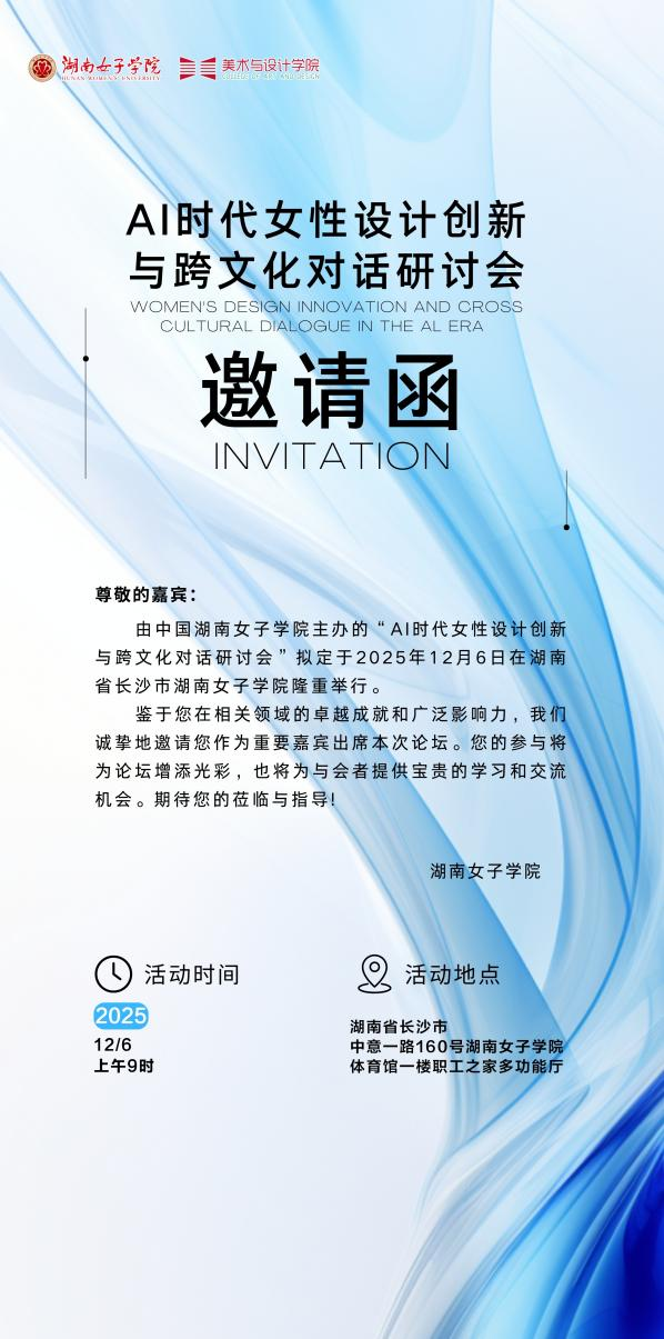 湖南女子学院依托“设计学”湖南省“十四五”应用特色学科,积极构建此次国际学术交流平台。欢迎各界师生、学者与行业同仁莅临本次研讨会,携手共创AI时代女性设计创新的发展蓝图。